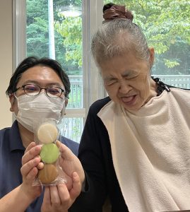 当施設では入居者様一人ひとりに担当職員が付いており、入居者様のお誕生日の際には担当職員がささやかな記念品やお好きな食べ物を誕生プレゼントとしてご進呈させて頂きております。