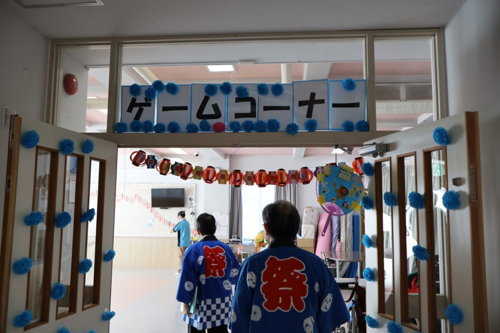 当日は朝から晴れやかな秋空が広がりました。手づくりの装飾や案内板で彩られた施設内がいつもと違う“おまつり空間”に変わり、入所者さん・利用者さんもご家族と共に会場の雰囲気を感じながら楽しく過ごせる場所ができあがっています。